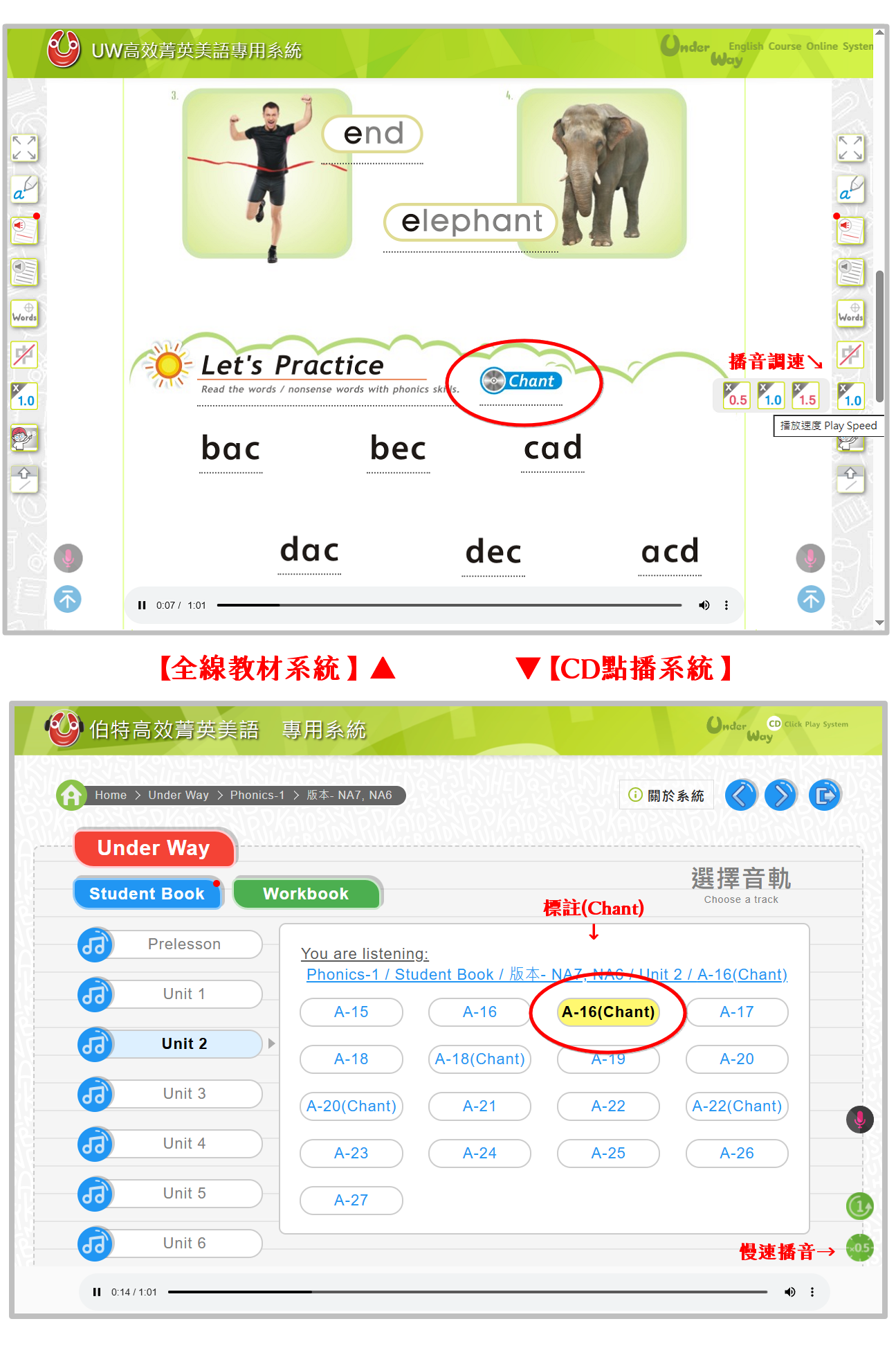 自從推出【Phonics I & II】《Let's Practice 單元/Chant 版》後,收到許多老師熱情的回饋!輕快的節奏讓課堂氣氛也更活潑有趣,孩子的發音拼讀練得更好。日前某資深老師向中心反映: 目前的Chant節奏,對於小一二生而言,會跟得有點吃力…。非常感謝老師的建議與分享!對此,中心已即時完成調整,希望現在的版本能更貼近教學現場需求。