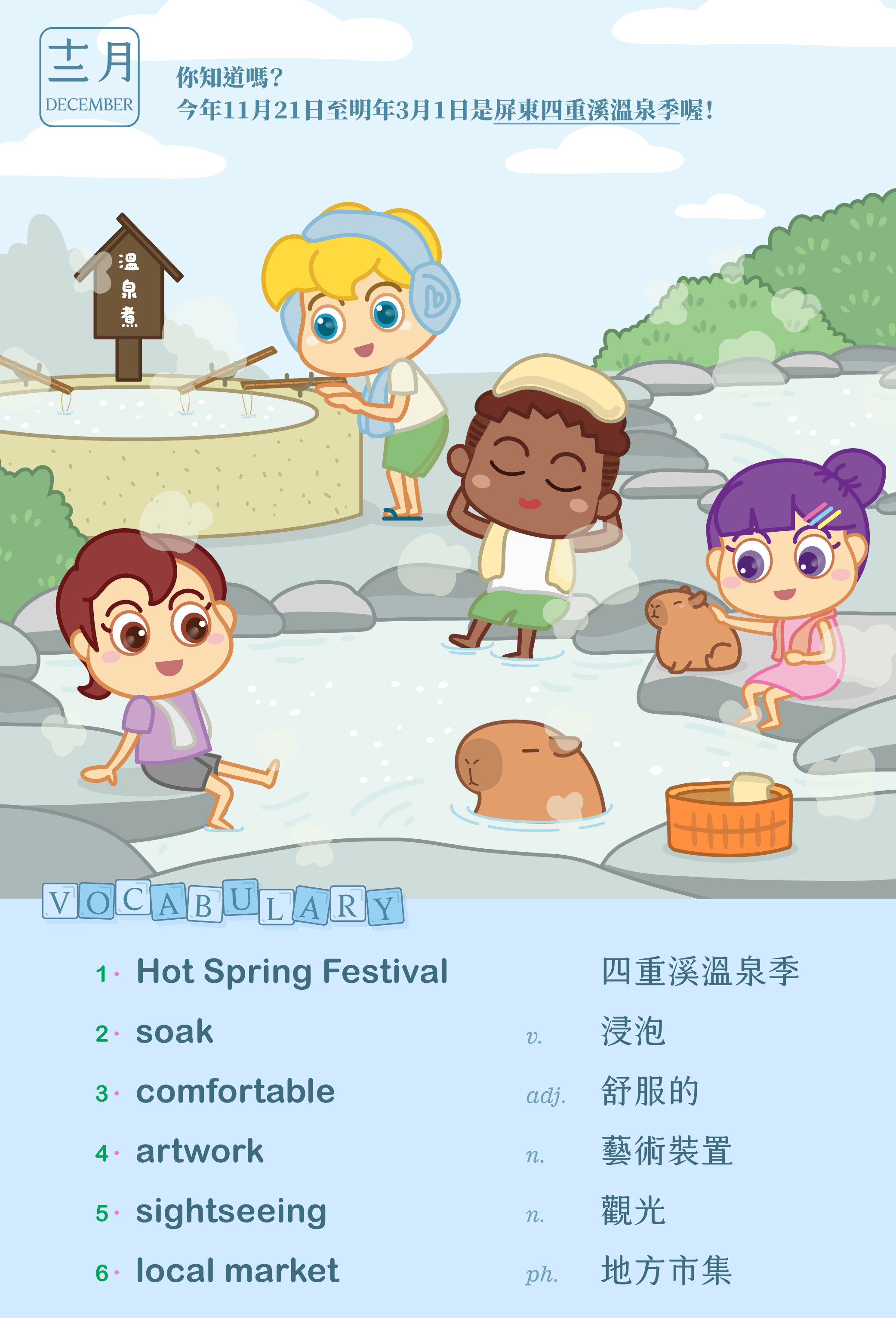 大家泡在暖暖的泉水裡,覺得非常舒服。